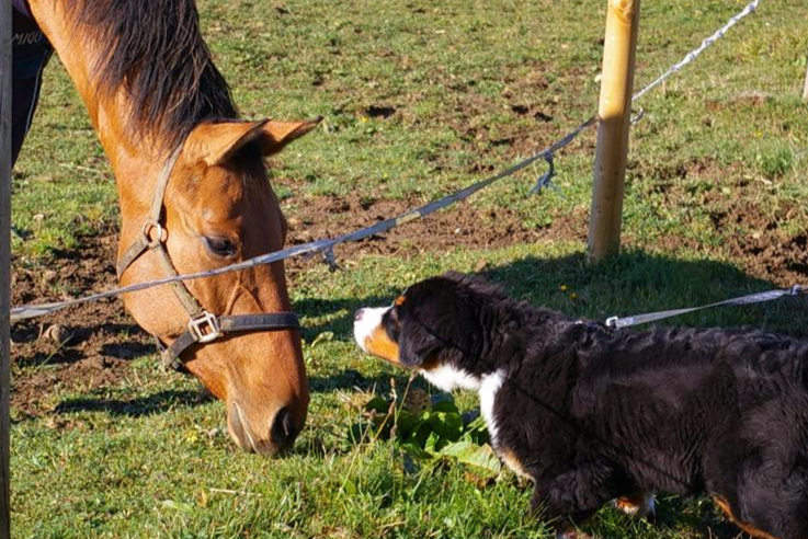 Richtig - ein Pferd! Und das durfte eine kleine Abordnung unserer Welpengruppe heute kennen lernen :-)