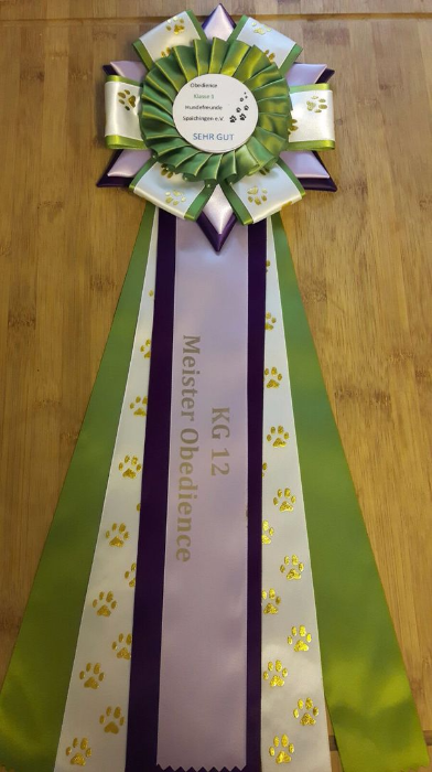 Am heutigen Sonntag fand die Obedience KG 12 Meisterschaft beim HF Spaichingen statt. Corina Jäckle konnte sich den Sieg, und somit den Kreismeister in der Obedience 1 sichern. Neben drei Konkurrenten erreichte sie mit Branko vom Petersfels die tolle Punktzahl von 251,5 Punkten und somit ein hohes SG.
