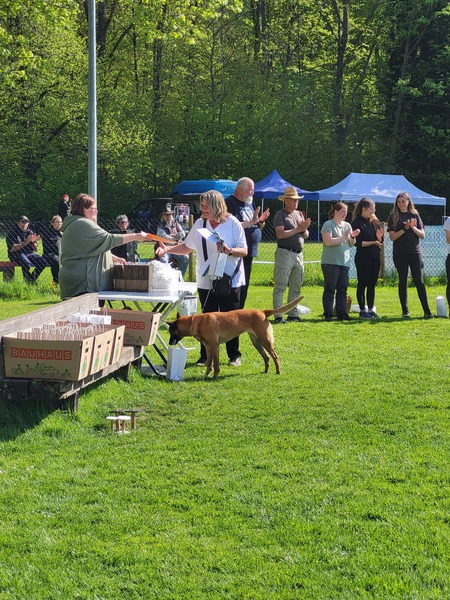 Am Samstag zeigte sich das Wetter leider wenig freundlich – nass, kalt und ungemütlich. Doch davon ließ sich Tanja Zimmermann nicht entmutigen: Mit ihrer jungen Hündin Baya, der jüngsten im gesamten Starterfeld, erarbeitete sie sich unter 21 Teilnehmern in Klasse 1 einen beachtlichen 13. Platz. Mit 255,75 Punkten verpassten die beiden nur knapp die Wertung „Vorzüglich“ – eine starke Leistung!