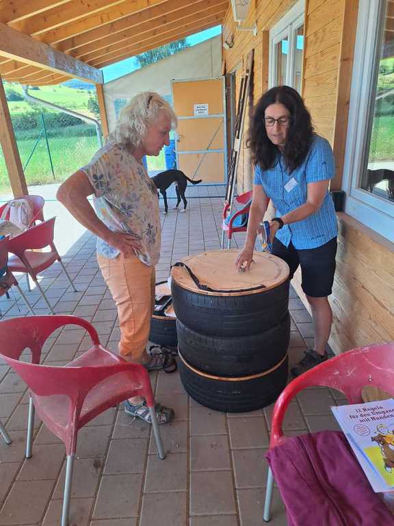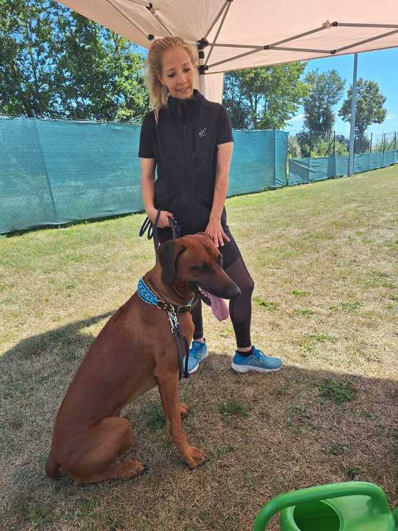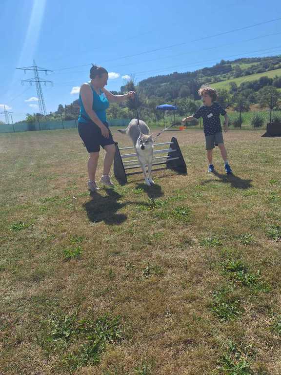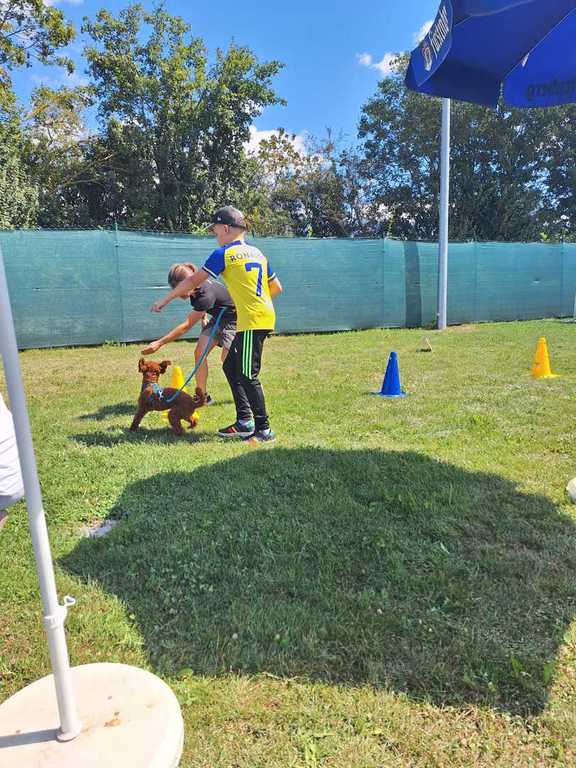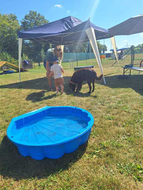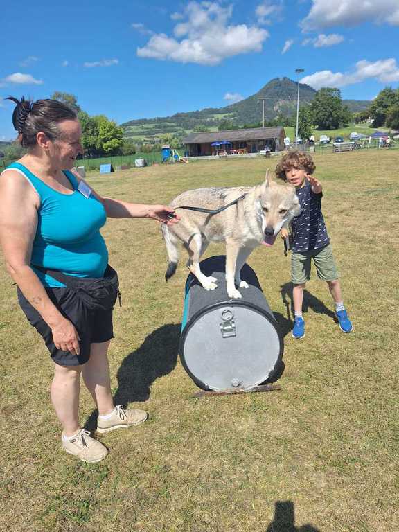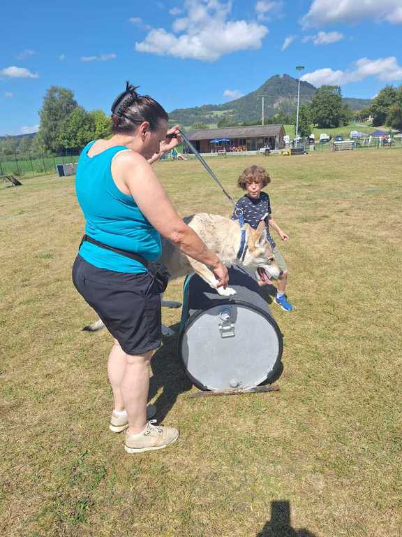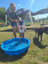Bei strahlendem Sonnenschein und heissen Temperaturen ging es gemeinsam mit den Hunden durch kleine Parcours mit Pylonen und Hindernissen. Natürlich durfte die entsprechende, nasse Abkühlung in kleinen Hundepools nicht fehlen, die sowohl von Zweibeinern als auch den Fellnasen gern genutzt wurden.