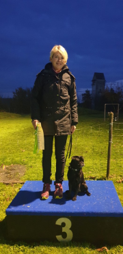 Michaela Wehrle mit Gustav mit 244 Punkte und dem Prädikat "sehr gut" auf Platz 3 im Obedience Klasse 1: