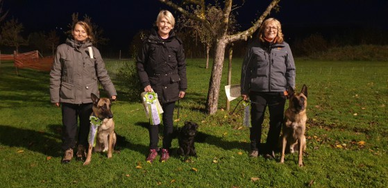 Insgesamt waren 21 Hundeführer in allen Klassen am Start und zeigten überaus gute Leistungen. Daher freut es uns um so mehr, dass zwei unserer Starter das Treppchen erklimmen durften, und die Dritte mit Platz 4 knapp das Treppchen verfehlt hat.