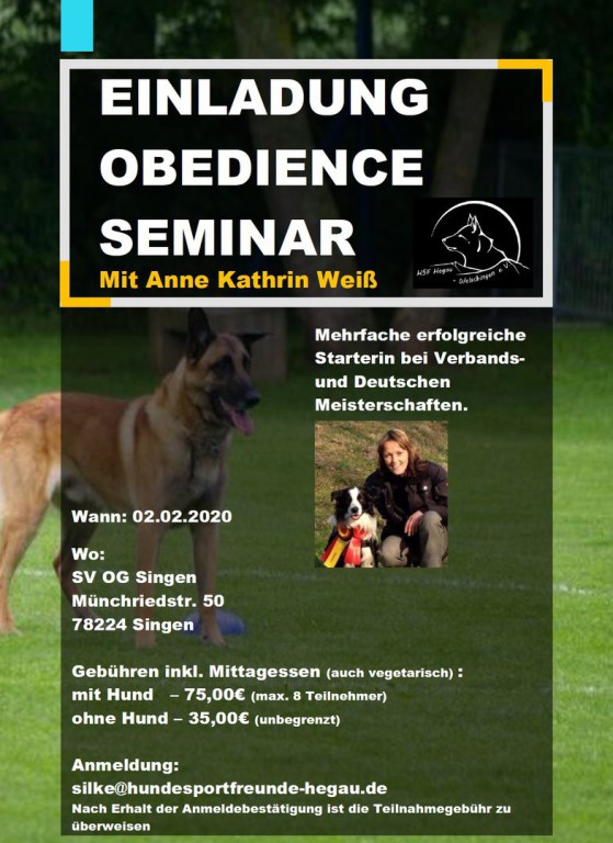 Wir gratulieren Melanie mit Lupatus Apoll (Bömbi) zu 283 Punke/vorzüglich in Obedience Klasse 3 und Andrea mit Lupatus Aik zu 233,5 Punkte/sehr gut in Klasse 2. Wir sind sehr stolz auf Euch und hoffen auf ein gutes und erfolgreiches Sportjahr 2020!
