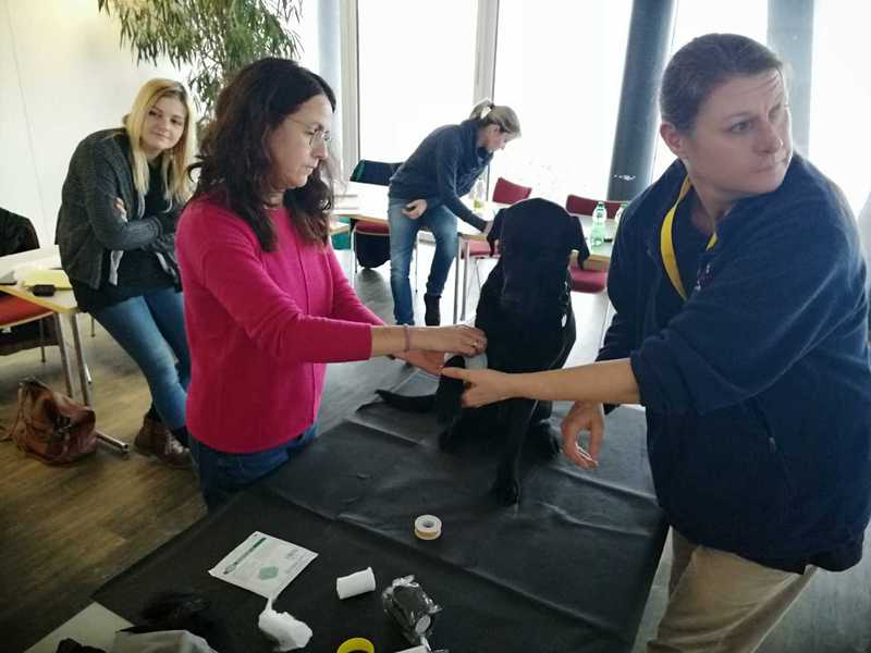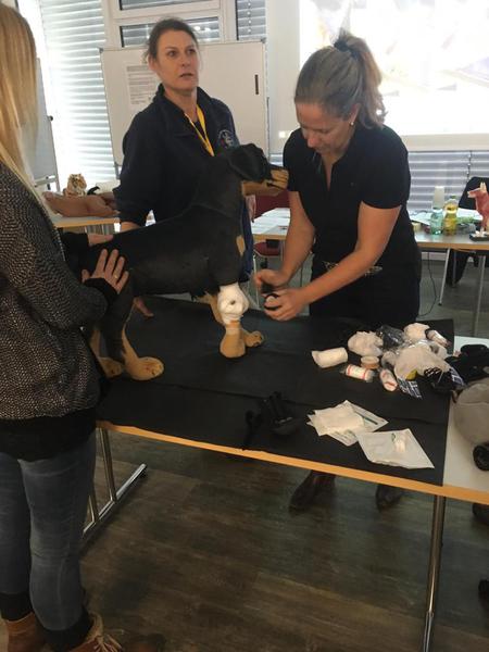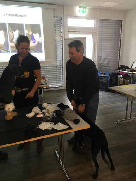 Wir haben einfache Erste-Hilfe-Maßnahmen erlernt, die bei Verletzungen, Vergiftungen oder Erkrankungen des Hundes den Genesungsprozess ermöglichen oder beschleunigen.