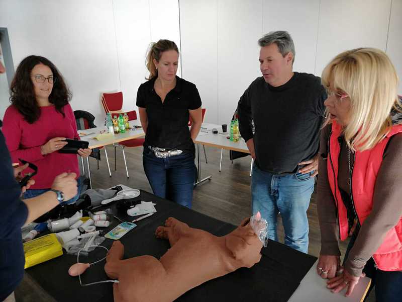 Durch die theoretischen Informationen und praxisorientierter ausgewählter Übungen an Dummies und extra hierfür ausgebildeten Rettungshunden, wurden lebenserhaltene Maßnahmen angewendet, welche unverzügliches Handeln erfordern, um die Gesundheit und das Leben des Hundes zu erhalten.