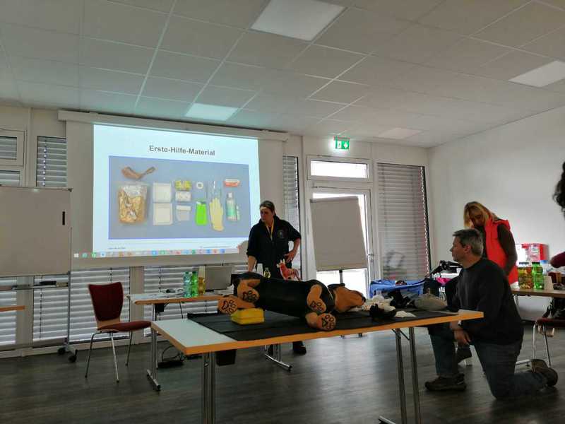 Am Samstag, den 14. Dezember 2019 hatte eine Delegation unsere Vereines die Möglichkeit an einer Fortbildung zum Thema „Erste Hilfe Hund“ teilzunehmen. Veranstalter war die DRK Rettungshundestaffel Villingen-Schwenningen, des DRK Kreisverbandes VS.