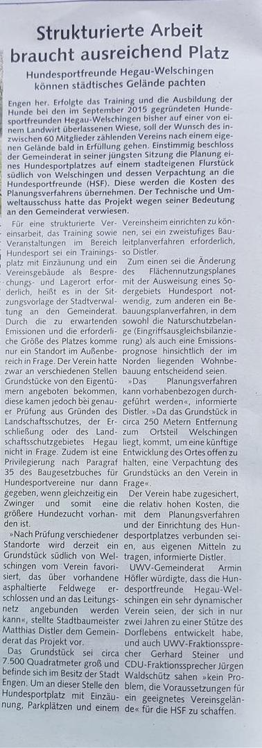 Jahreshauptversammlung des HSF Hegau-Welschingen e.V.