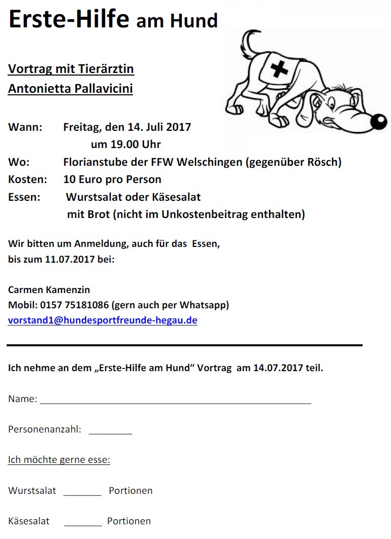 Tierärztin Antonietta Pallavicini hat sehr anschaulich Erste-Hilfe-Maßnahmen am Hund erklärt. Darüber hinaus wurden ausführlich viele Themen angesprochen, die jeden Hunde treffen können. Angefangen von Parasitenbefall, Durchfallerkrankungen, Fremdkörper im Hund, vorbeugende Maßnahmen gegen Zecken und vieles mehr.