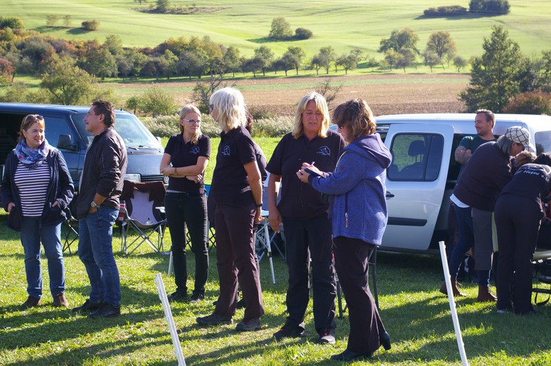 Als Fan und Interessierte ging Christel Ehrler mit ihrem Levy mit. Bevor die Richterin Iris Pürkel eintraf, war schon eine sehr gute Stimmung im Vereinsheim. Heißer Kaffee und viele Kuchen wurden angeboten. Wurstbrötchen und Käsebrötchen lagen zum Verzehr auf der Theke. Das Wetter sah noch sehr vielversprechen aus. Nicht zu warm, und genau richtig um das Turnier zu laufen.