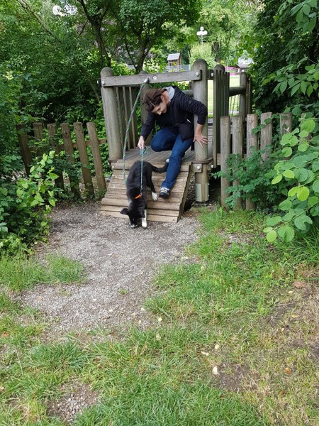 Es war wieder eine ganz neue und eigene Erfahrung, in so einer Umgebung mit den Hunden zu arbeiten. Nicht nur die fremde Örtlichkeit, sondern auch Pferde, die ebenfalls in der Halle in den Boxen standen, Vögel die ein und aus flogen, und zu guter letzt auch Katzen, die sich sehr heimisch fühlten.