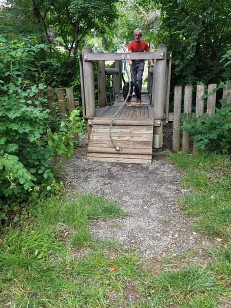 Hier wurde beobachtet, wie sich Hund und Hundeführer bei Ablenkung mit Fahrrad und Roller verhalten.