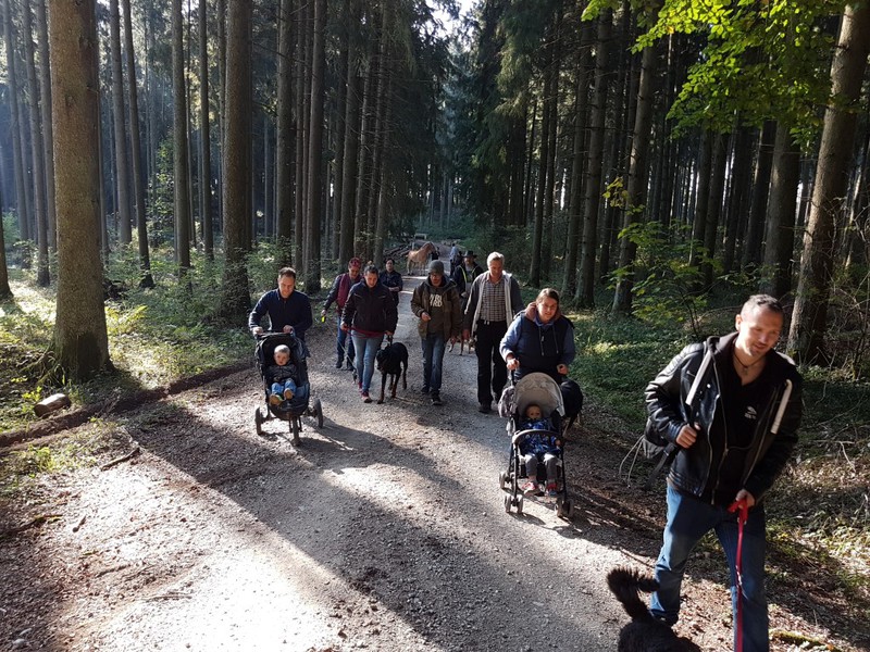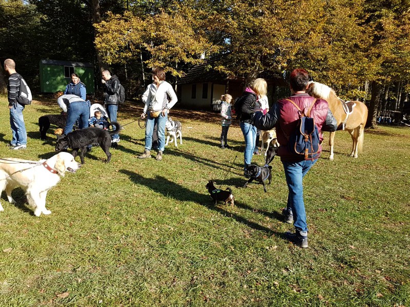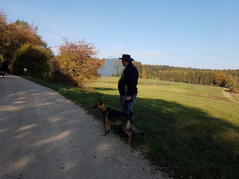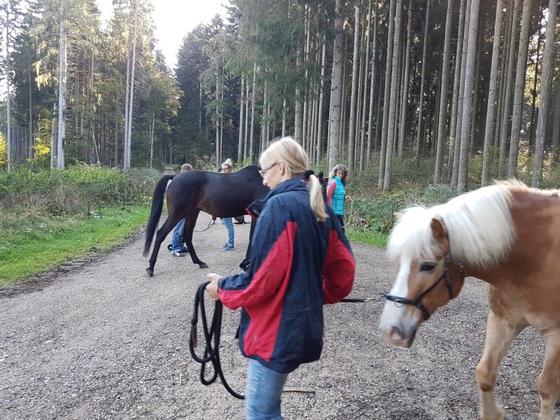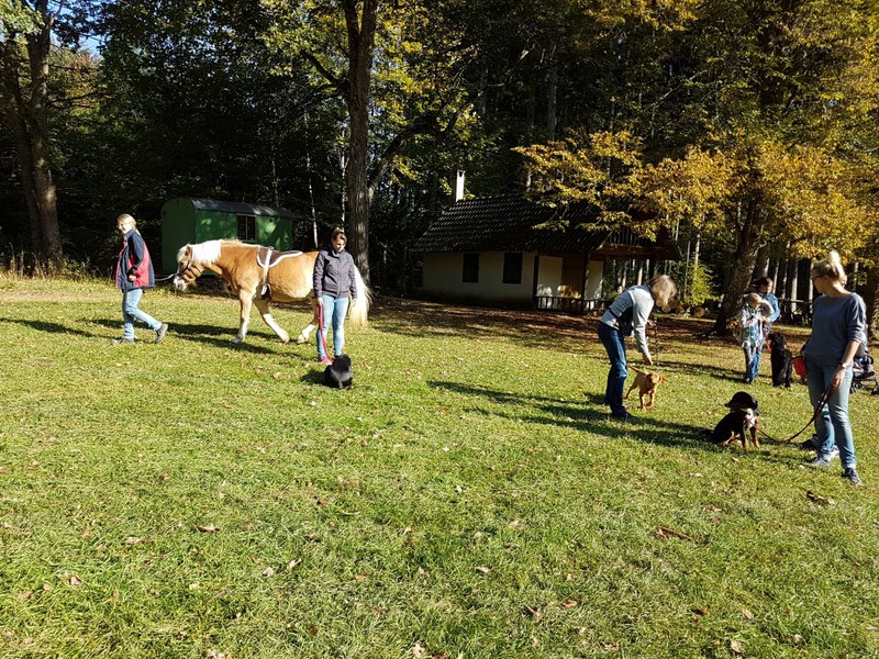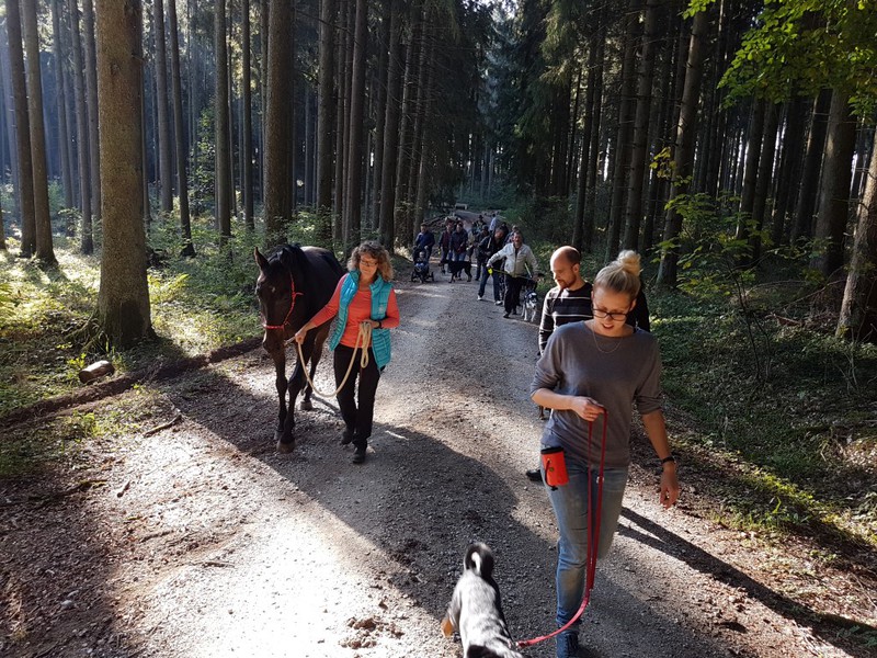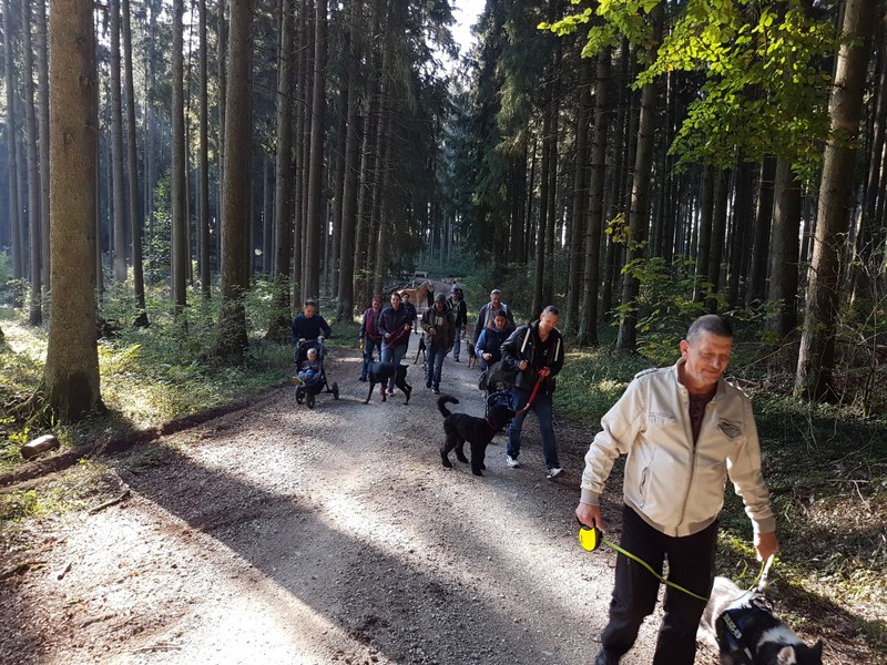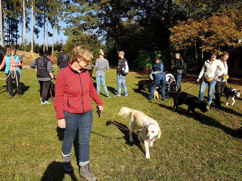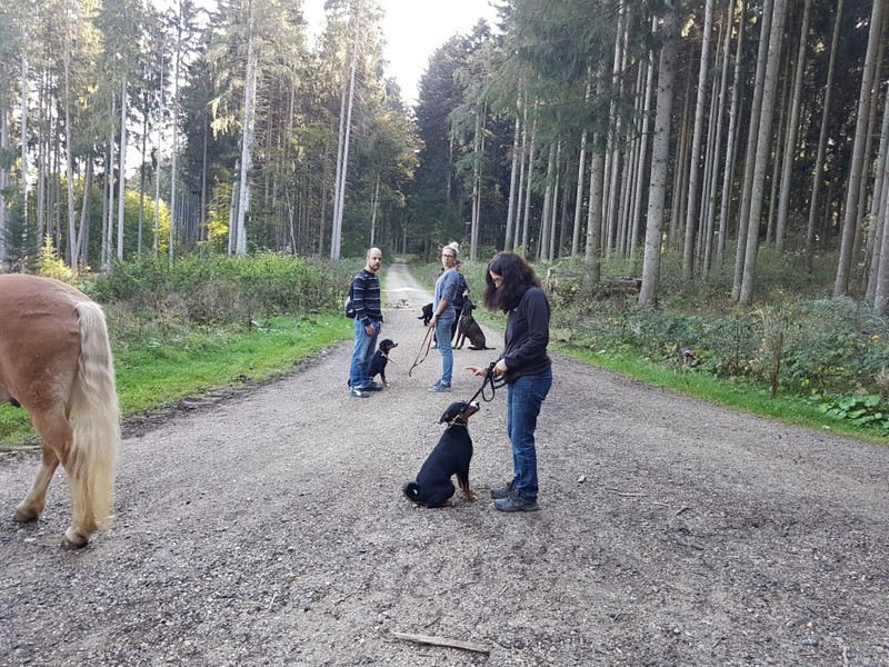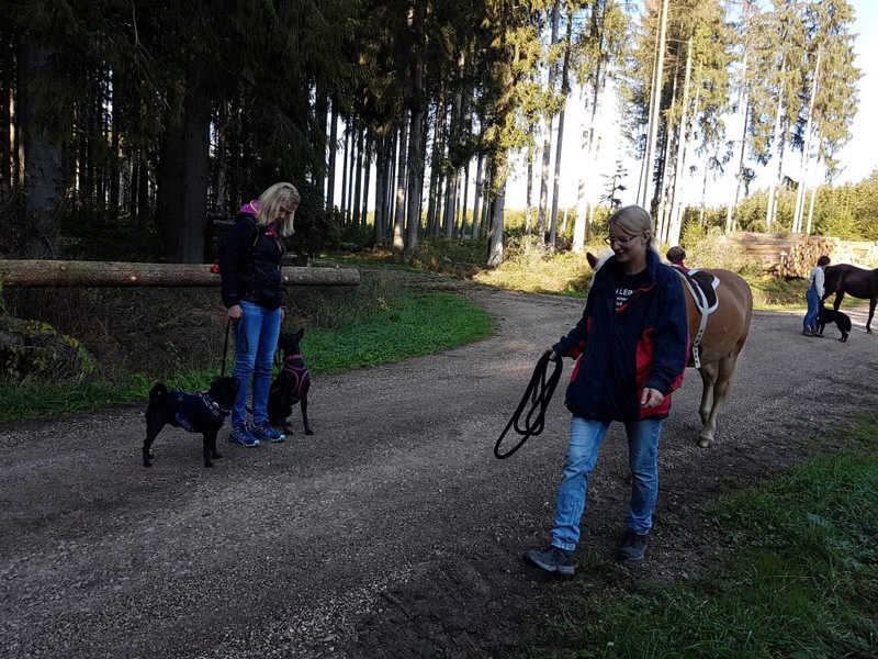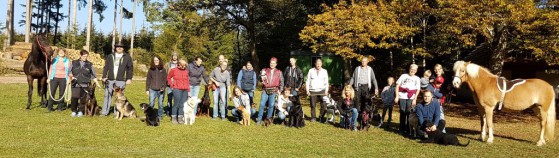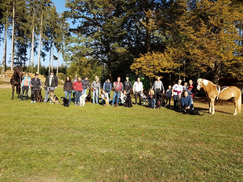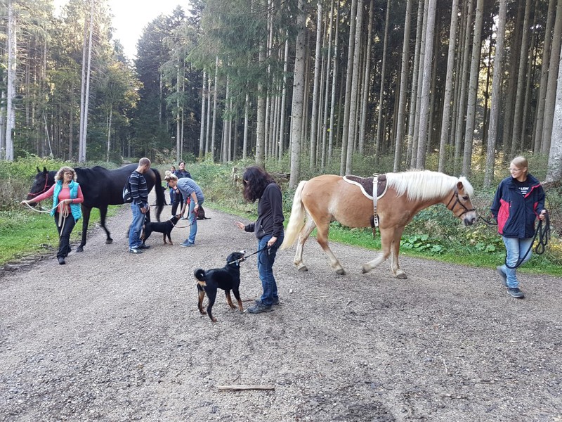 Am heutigen Sonntag unternahm der HSF eine kleine Hund/Pferdwanderung. 17 Hunde mit Kind und Kegel, sowie drei Pferde waren mit von der Partie. Bei unglaublich schönem Herbstwetter konnten wir in Tengen, bei einem Waldspaziergang, genau das üben, was sonst nicht so ohne weiteres möglich ist, nämlich Begegnungsverkehr mit Pferden.