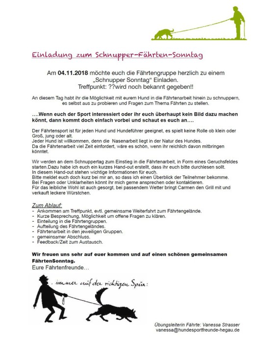 Anmeldung wird erbeten unter vanessa@hundesportfreunde-hegau.de