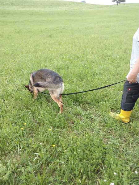 Einen wunderbaren Morgen durften wir heute beim Schnupper-Fährten erleben. Bei idealen Wetterbedingungen haben sich 12 Hundeführer in die Welt der Nasenarbeit der Hunde einführen lassen. Sie wurden in vier Gruppen aufgeteilt, und die Sucharbeiten wurden parallel durchgeführt. Wie so oft konnte man wieder darüber staunen, wie die Hunde - egal ob junger Hund mit 6 Monate, erwachsener Hund oder Hund im reiferen Alter - hochkonzentriert sich der Fährtenarbeit hingegeben haben. Dabei war es egal, dass Personen unmittelbar neben den Geruchsfeld standen, oder ein paar Meter weiter ein anderer Hund beim Suchen war.
