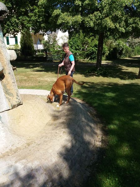Unter Anleitung von Chris haben sie den Park im Herzen von Welschingen aufgesucht, um dort viele Alltagssituationen mit ihren Hunden zu trainieren.