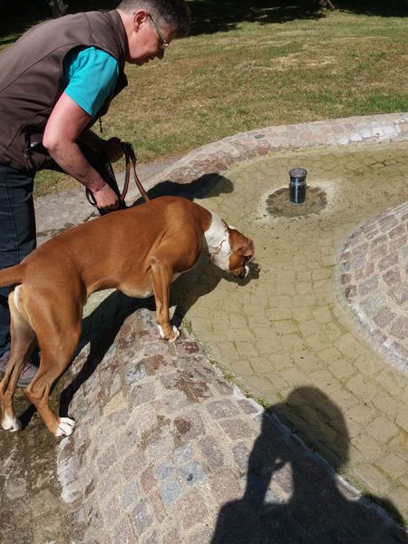 Die Temperaturen sind derzeit für Mensch und Hund kaum erträglich. Was liegt näher, sich die bestmögliche Abkühlung zu suchen.