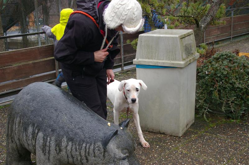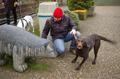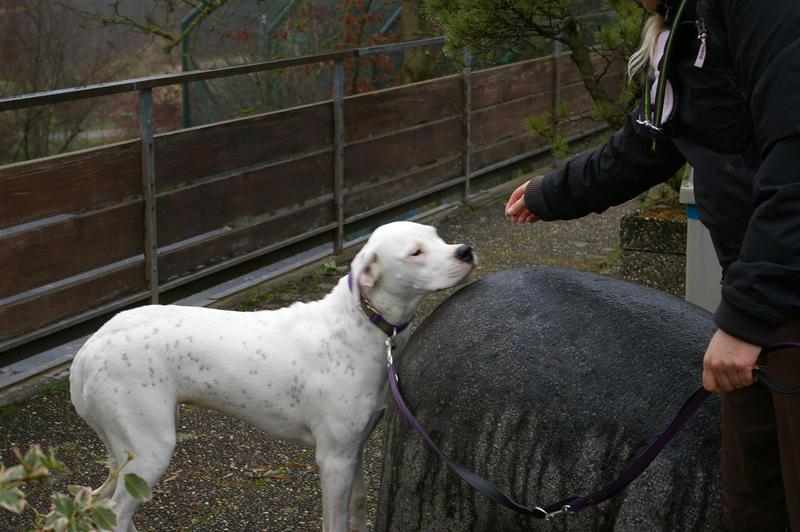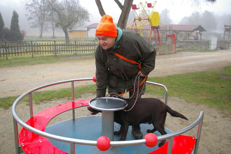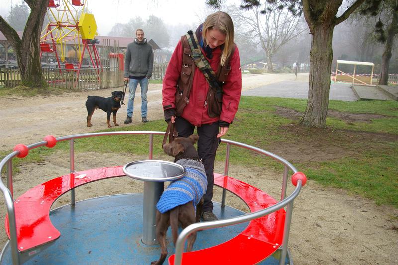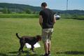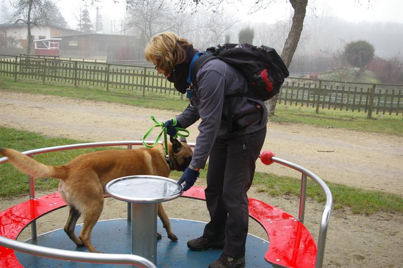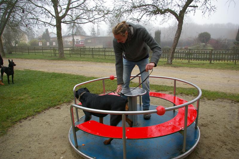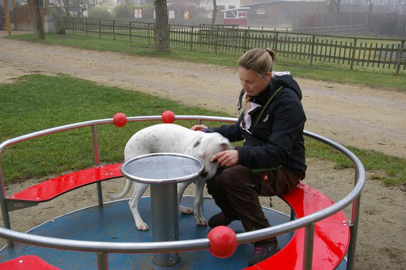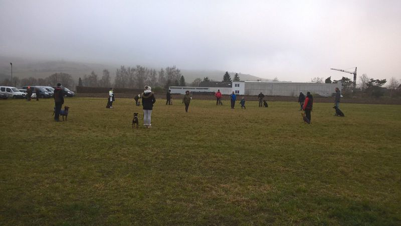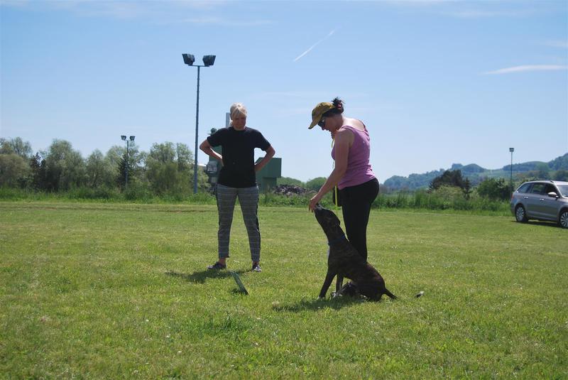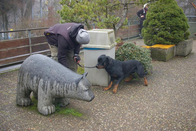 Es liegen nunmehr vier Trainingseinheiten hinter uns. Das Hauptaugenmerk lag bislang bei der Leinenführigkeit (auch unter Ablenkung von Futter bzw. Spielzeug), Begegnungsverkehr mit anderen Hunden bzw. Personen und Abrufübungen unter Ablenkung. Es wurden kleinere Spaziergänge unternommen, an denen das Gelernte umgesetzt werden soll. Am Schluss der heutigen Übungsstunde hatten wir zum ersten Mal einen kompletten Ortswechsel, um den Hunden auch ein anderes Umgebungsbild zu schaffen.