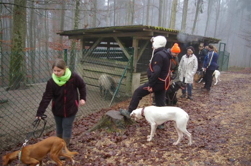 24 Personen mit insgesamt 16 Hunden nahmen an diesem Ausflug teil, der für alle doch gleichermassen anstrengend war. Obwohl auch viele ältere Hunde dabei waren, waren die Eindrücke insgesamt doch sehr stark für unsere vierbeinigen Freunde. Nicht nur in diesem Pulk von so vielen Hunden zu laufen, sondern dann auch noch mit den Gerüchen der vielen Wildtieren umzugehen und sie dann auch noch zu sehen ..... das war teilweise schon eine harte Nummer.
