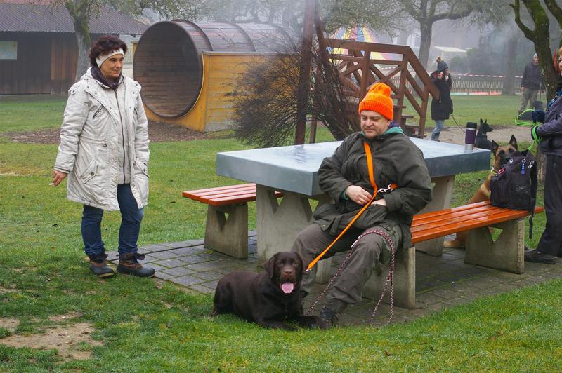 Zur Halbzeit, während die Hunde sich ausruhen dürfen und die Hundeführer sich bei einem Kaffee und einer Brezel stärken für die zweite Runde, gab es einen Theorieteil, bei dem auf verschiedenste Themen rund um den Hund eingegangen wird.